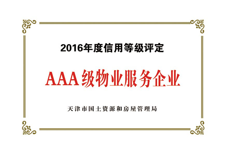 榮譽資質:天津市首批AAA級物業(yè)企業(yè)